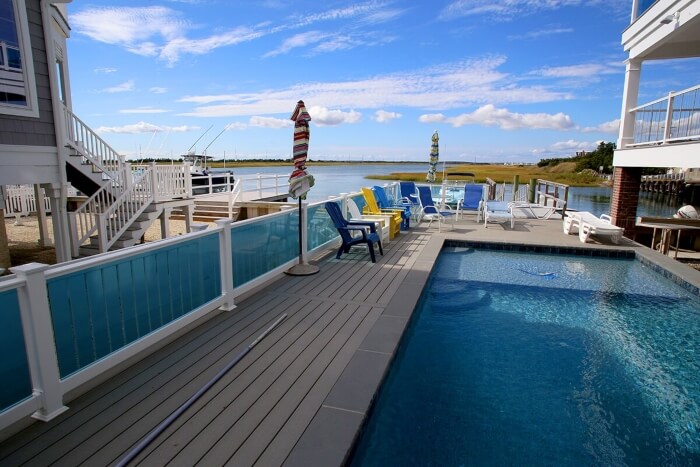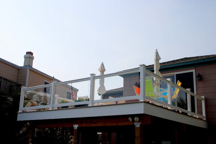 Strength. In our experience, glass is one of the strongest materials for railing. Tempered glass and its unbelievably strong fasteners ensure it stays put despite the elements.
